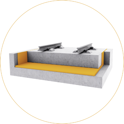 Las Suelas Bajo Durmiente de Getzner contribuyen a mejorar la interacción de los diferentes elementos de la superestructura ferroviaria clásica. Gracias a las Suelas Bajo Durmiente, la carga de los vehículos ferroviarios se transfiere al terreno de manera uniforme, lo cual contribuye considerablemente en la reducción del desgaste de los componentes vía, generando un ahorro en el gasto del usuario y un aumento sustancial de la disposición de la vía.